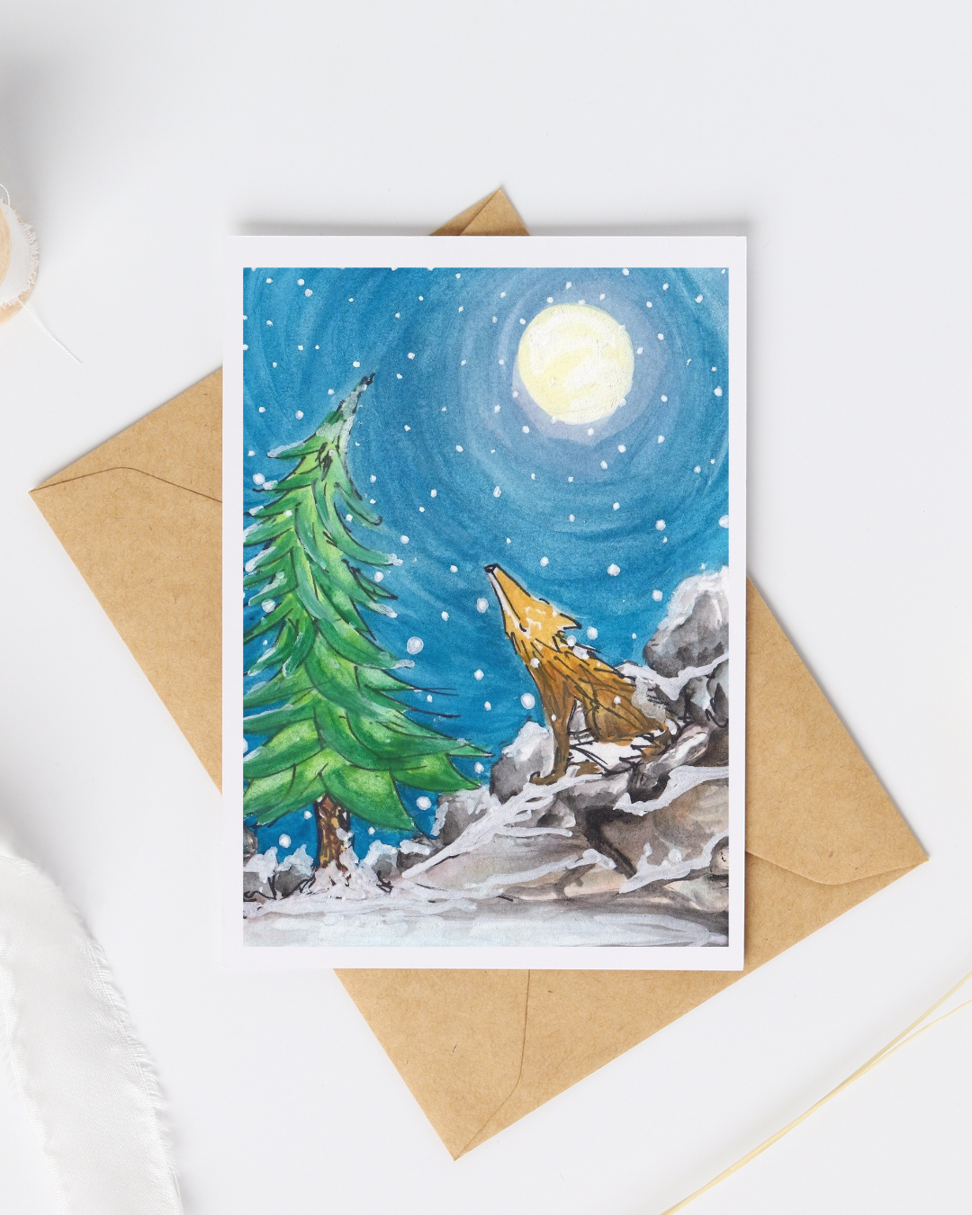 Postkaart - Vos en maan